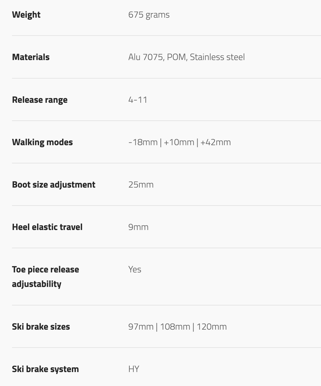 Hy Brake System: The rear ski brake locks automatically when the heel piece is in walk mode. This means that when the real lever has been pushed fully forward the ski brake can be locked in position with a simple press of the rear paddle. When transitioning to ski mode, it seamlessly unlocks by pushing the rear lever backwards, ensuring hassle-free use.