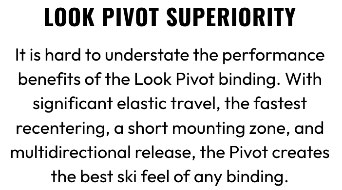 THIS IS ONLY THE UPGRADE KIT AND DOES NOT INCLUDE THE LOOK PIVOT BINDING. THE LOOK PIVOT 15 2.0 OR 18 2.0 MUST BE PURCHASED SEPARATELY