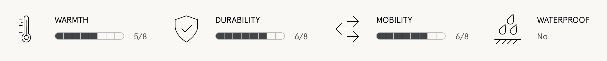 - Backhand made of windproof and breathable polyester softshell fabric.