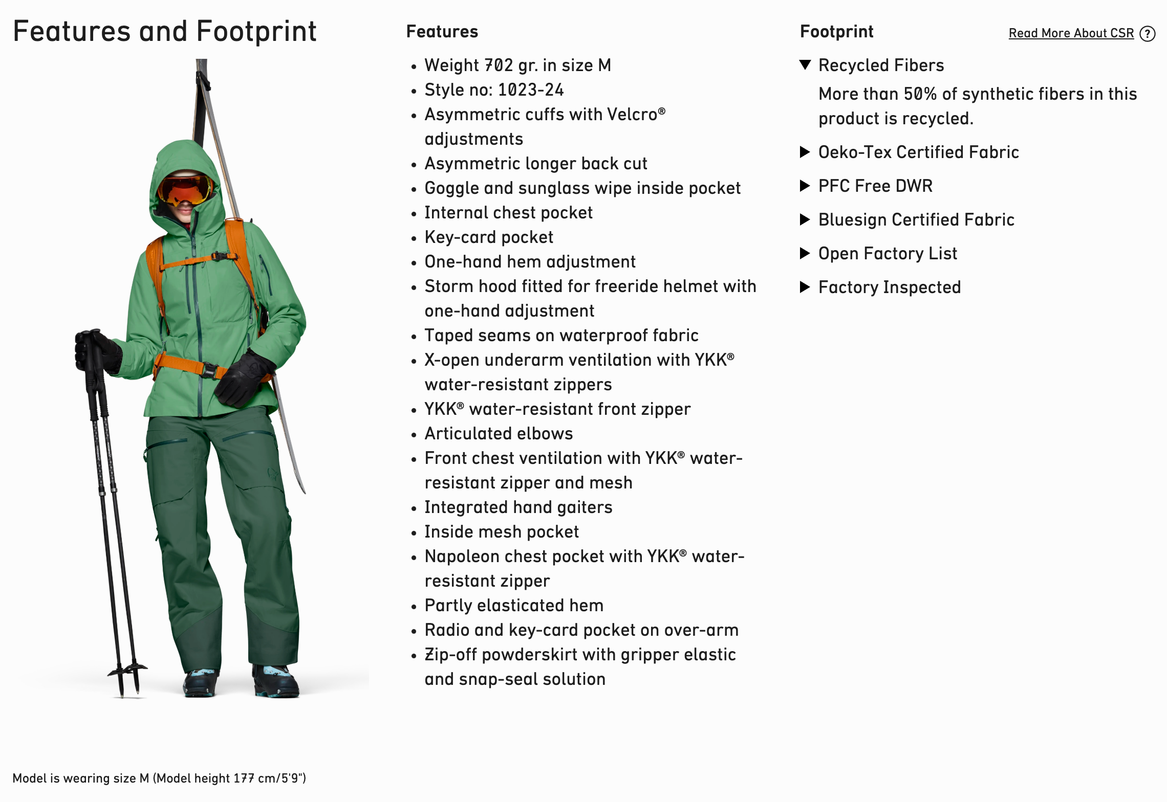 This insulated shell jacket (702gr W/medium) is made for freeriding but works perfectly for general ski/snowboard activities on and off-slope during colder winter days.