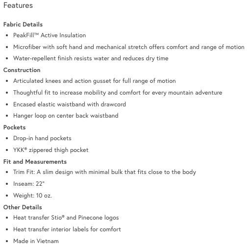We're obsessed with the Fernos Knicker. It finds the fine skier's line between frictionless mid-layering and highly breathable warmth—think super light, silky-smooth comfort for a chilly chairlift ride, resisting cold winds and having a cozy après. PeakFill™ Active Insulation 40g offers warmth in cold smoke conditions yet allows airflow when gaining vertical. The true skier’s silhouette stops short of boot tops to eliminate bunching, binding or hassling when booting up in the lodge. Side stretch panels enable full range of motion, while an articulated cut fits in seamlessly at the ski cabin or in the seasonal locker room.