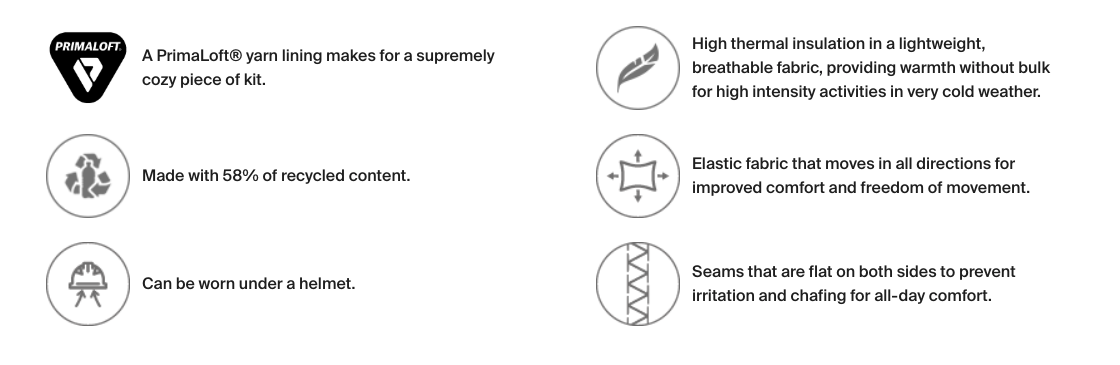 The new ThermoNet® Hinged Balaclava helps you battle the elements even in the harshest conditions. Made from our warmest technical fabric, THERMONET®, protects from wind two-and-a-half times more than standard fabrics and retains two times more heat. Primaloft® fibers provide ultimate insulation and lightweight warmth. Flatlock seams and 4-way stretch, paired with a helmet-compatible fit and easy pull-down design, provide versatility and comfort in extreme conditions.