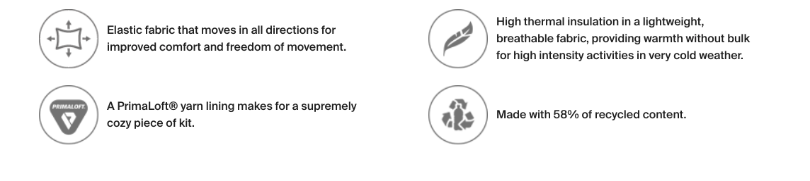 Convertible Balaclava with multiple ways to wear, delivering warmth without bulk using PrimaLoft® insulating fibers and 58% recycled content. Designed for active performance and ultimate breathability with flatlock seams and 4-way stretch.