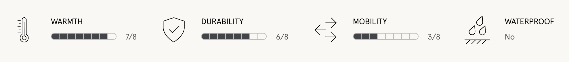 - Removable fleece liner (Bemberg) with polyester insulation (G-loft).